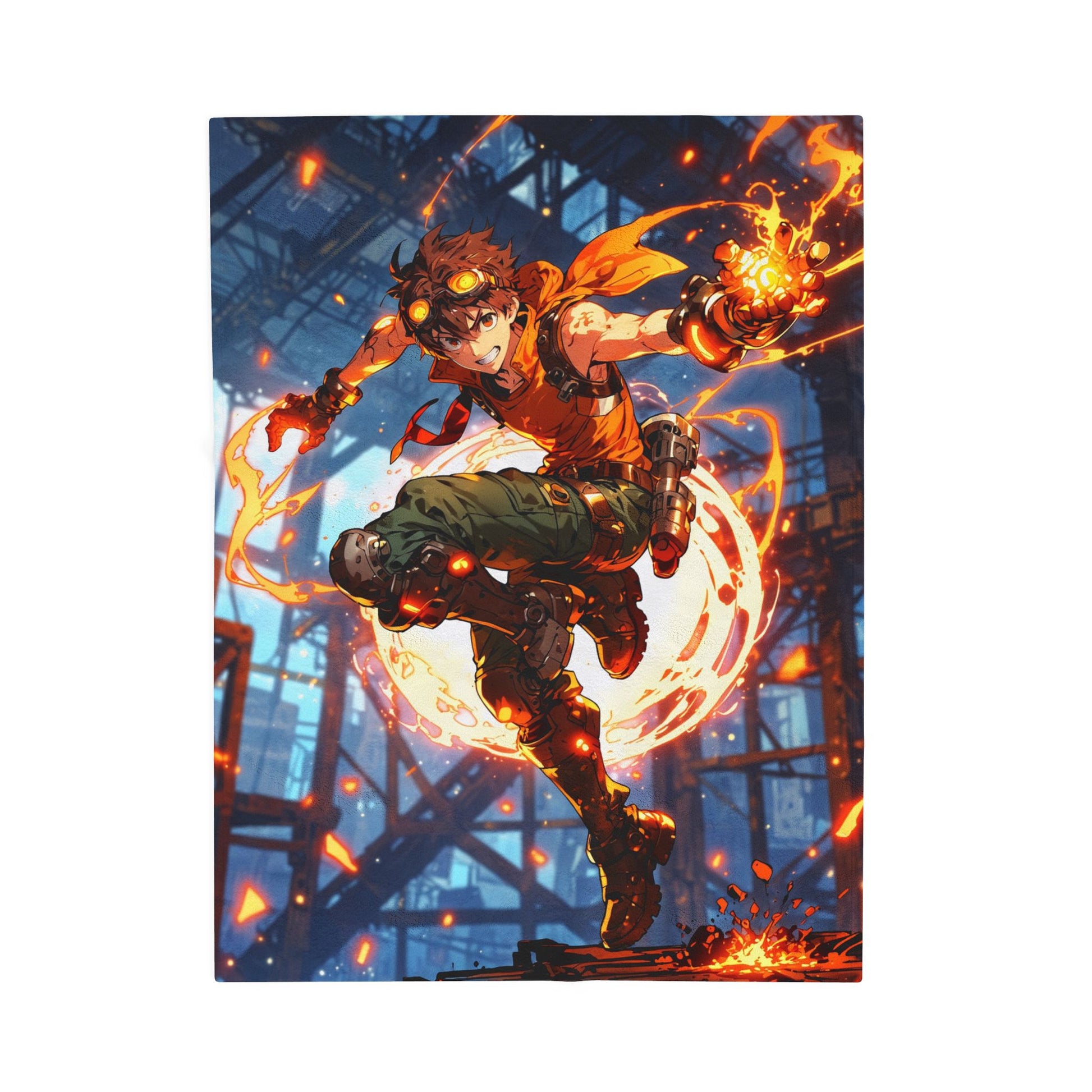 Unleash the power of innovation with this action-packed anime combat engineer blanket! Featuring a young, battle-ready inventor clad in steampunk-inspired armor, wielding fire-infused technology, this design blends high-energy anime action with futuristic engineering aesthetics.