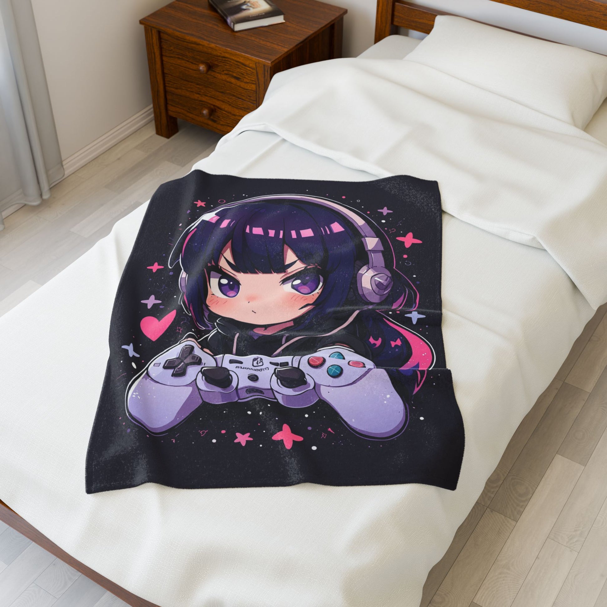 Anime Plush Blanket - Kawaii Gamer Girl