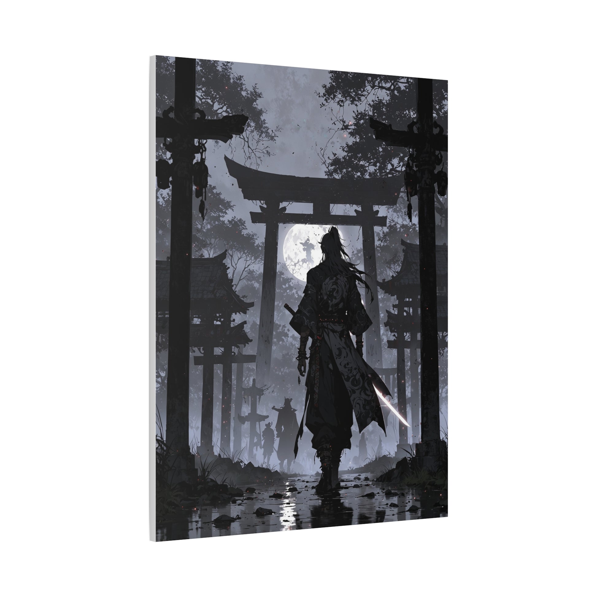 This hauntingly beautiful samurai artwork captures the essence of honor, revenge, and the way of the blade, set in a dark, atmospheric Japanese shrine. The monochrome tones, mixed with subtle embers of light, add to the cinematic, anime-inspired storytelling of this masterpiece.