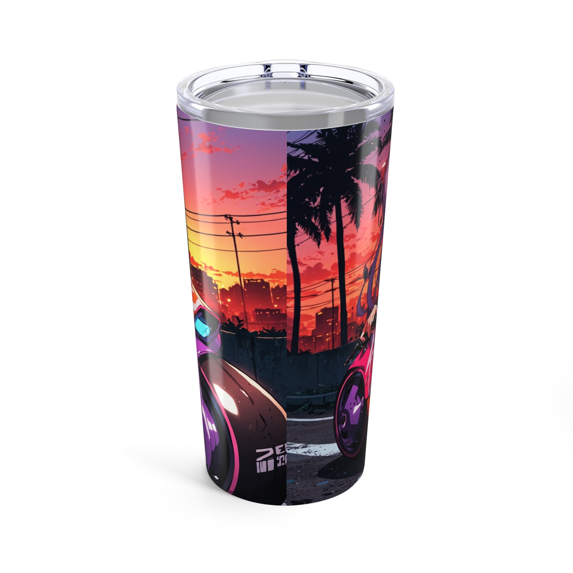 Tumbler Cup Anime Chibi Hover-Bike Girl 20oz Neon Future Sunset Design